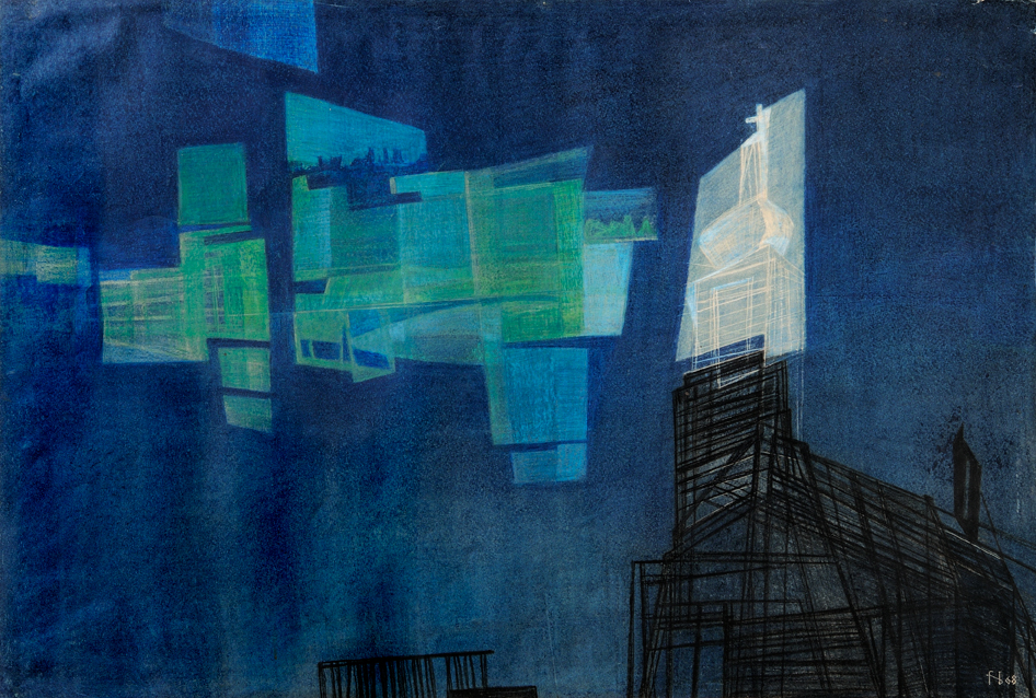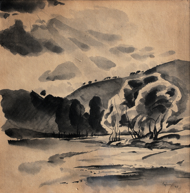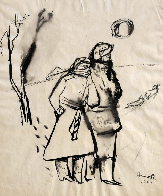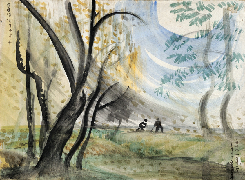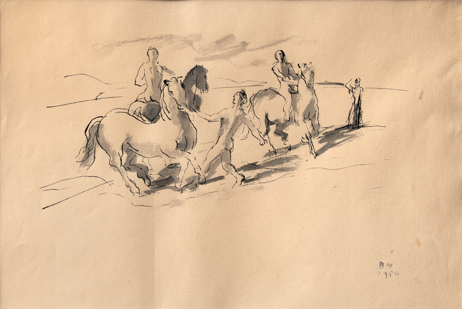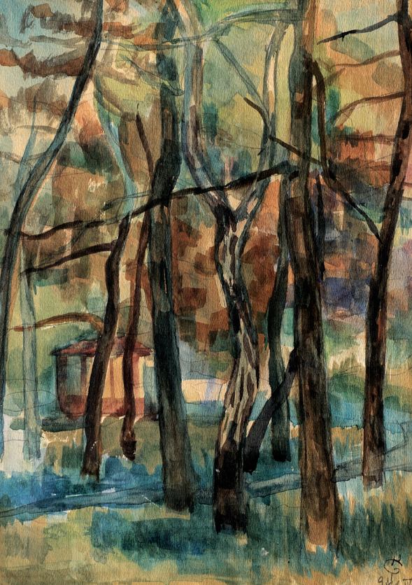 papír, ceruza, akvarell, 27 x 42,5 cm