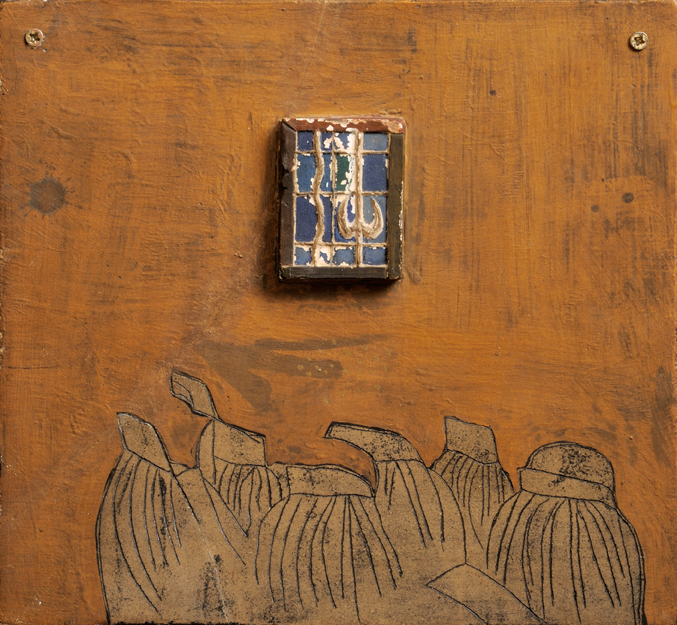 karton, olaj, aranyfesték, 33,5 x 26,5 cm
